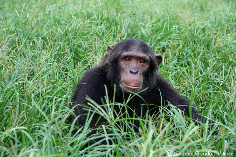 There are so many similarities between chimpanzees and humans; our shared ability to problem solve, form strong familial bonds, and a chimp infant holds a remarkable physical and behavioral likeness to a human baby (Learn more about the Jane Goodall Institute’s Chimpanzee Research here). Because of their uncanny resemblance to our own species (sharing 98.6% of our DNA), many baby chimps are stolen from their forest homes to be sold into the illegal pet trade, often killing their mothers in the process. Young chimpanzees may resemble human infants in their actions, affection and need for constant nurturing, but it is impossible for a human caregiver to raise an infant chimpanzee to be a happy, healthy, and well-adjusted adult ape.