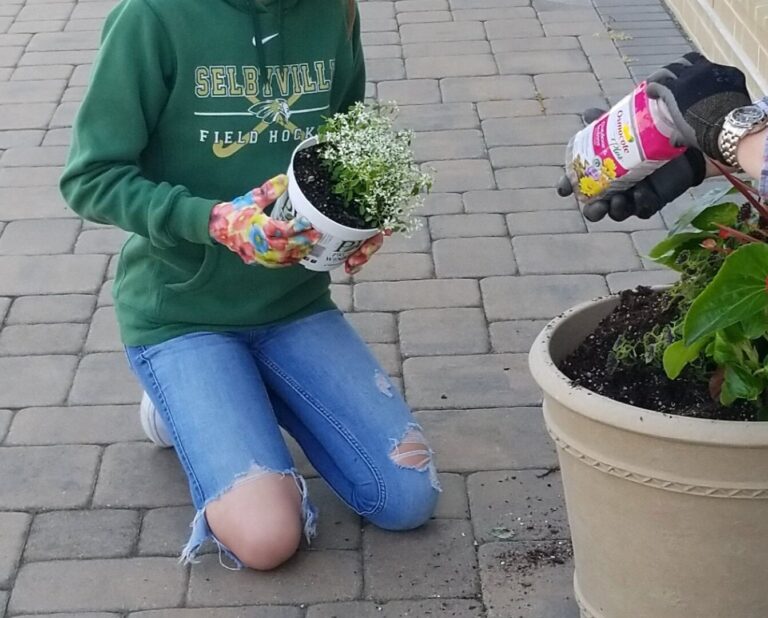 Group members and their families quickly came together to Step 3: Take Action! They used the empty flowerbeds, as well as large planting pots on the library’s patio space, to grow over 150 native plants for pollinators to enjoy. Knowing that weary wildlife travelers might need more than just food, they also installed a birdbath, several feeders, and even houses for birds to take shelter and build their nests in. By finding ways to include all the necessities of life—food, water, and shelter—for a variety of pollinators, they created a little wildlife habitat that the whole community could enjoy!